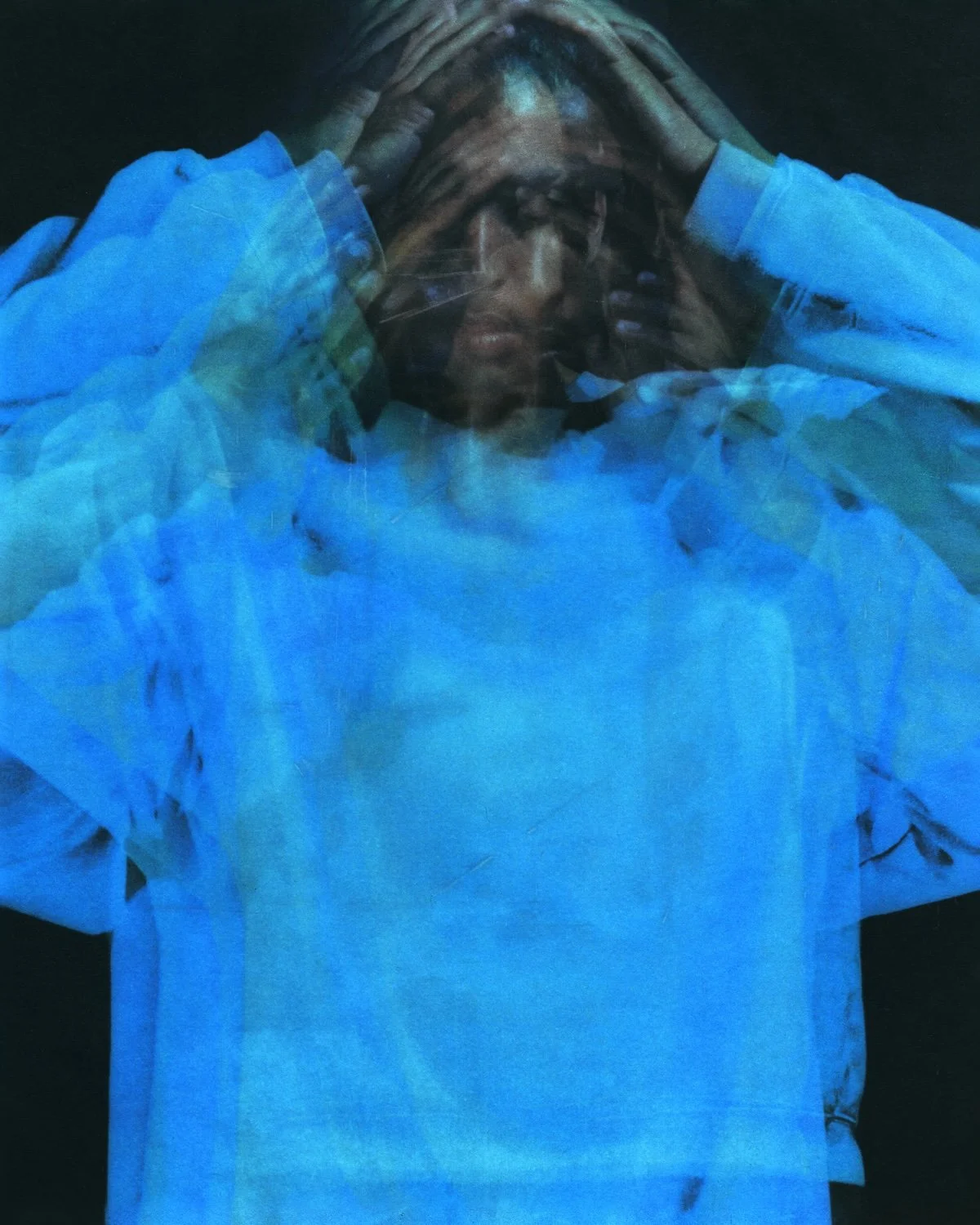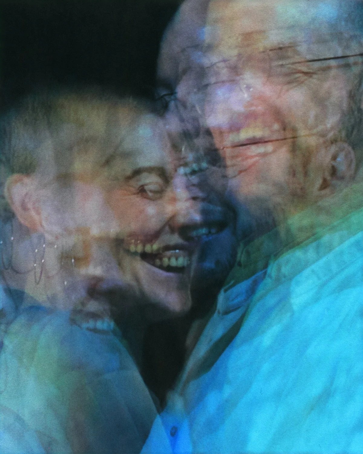 Various versions/ego states of individuals are contained within the layered depth of a single exposure. A still, meditative aura sits alongside expressive moments of laughter and agitation, as posture, body language, and facial expressions change and integrate.