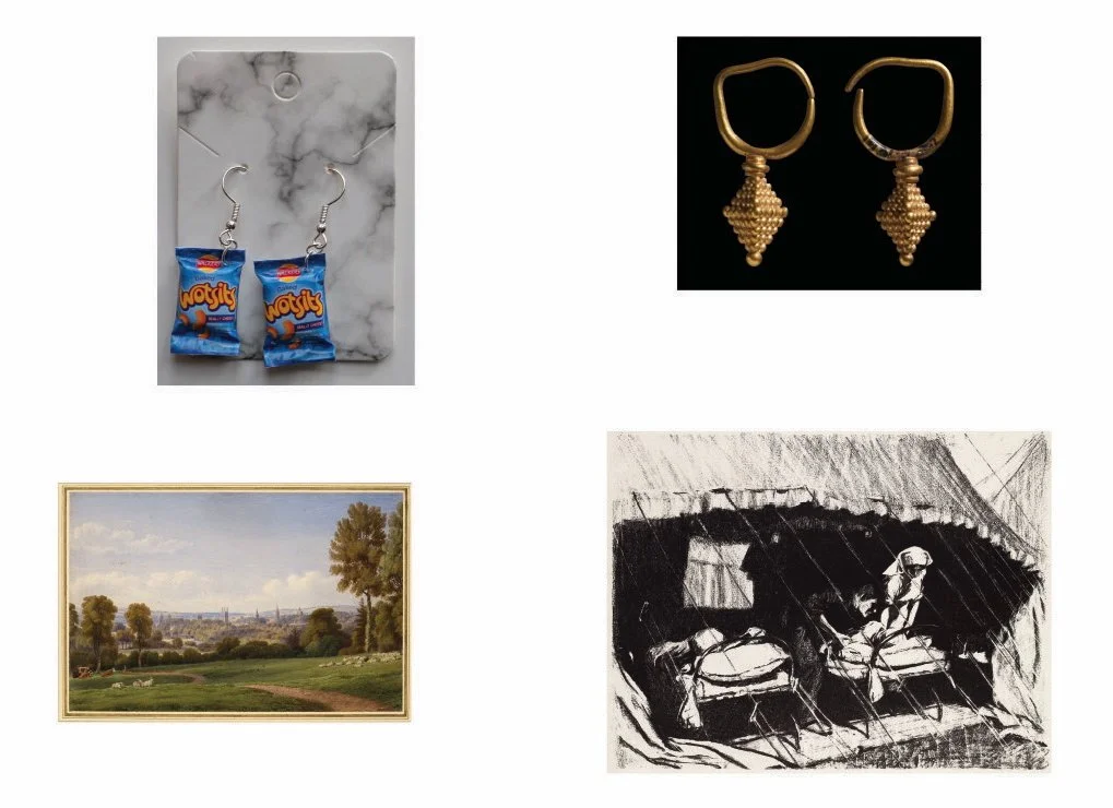 The artwork created from these images occupies an entire corridor leading to Trauma and Critical Care departments at the John Radcliffe Hospital, and is designed to bring distraction and interest to patients and their families, and improve the working environment of staff. The objects included have been chosen by the artist in collaboration with hospital staff and patients, and range from ceramics and paintings, to jewellry and snowboots. Staff were introduced to the collection through tours of the museum as well as sessions in which museum staff brought objects into staff rooms for hospital staff to handle and discuss.